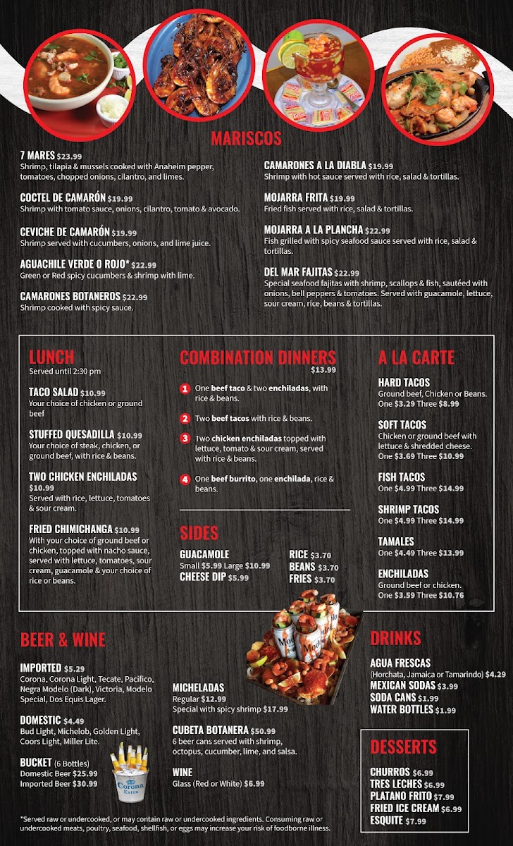 Shrimp, tilapia & mussels cooked with Anaheim pepper, tomatoes, chopped onions, cilantro, and limes.